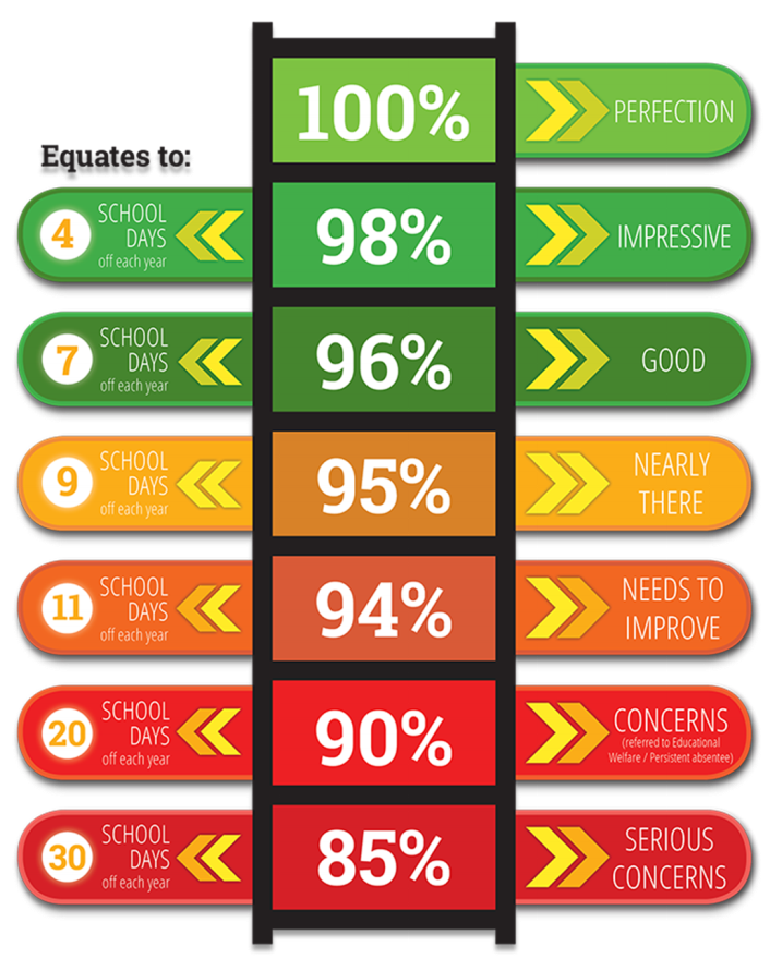 Your child is required by law to attend school every day. Occasional days’ absence, for whatever reason, seriously affect your child’s education.